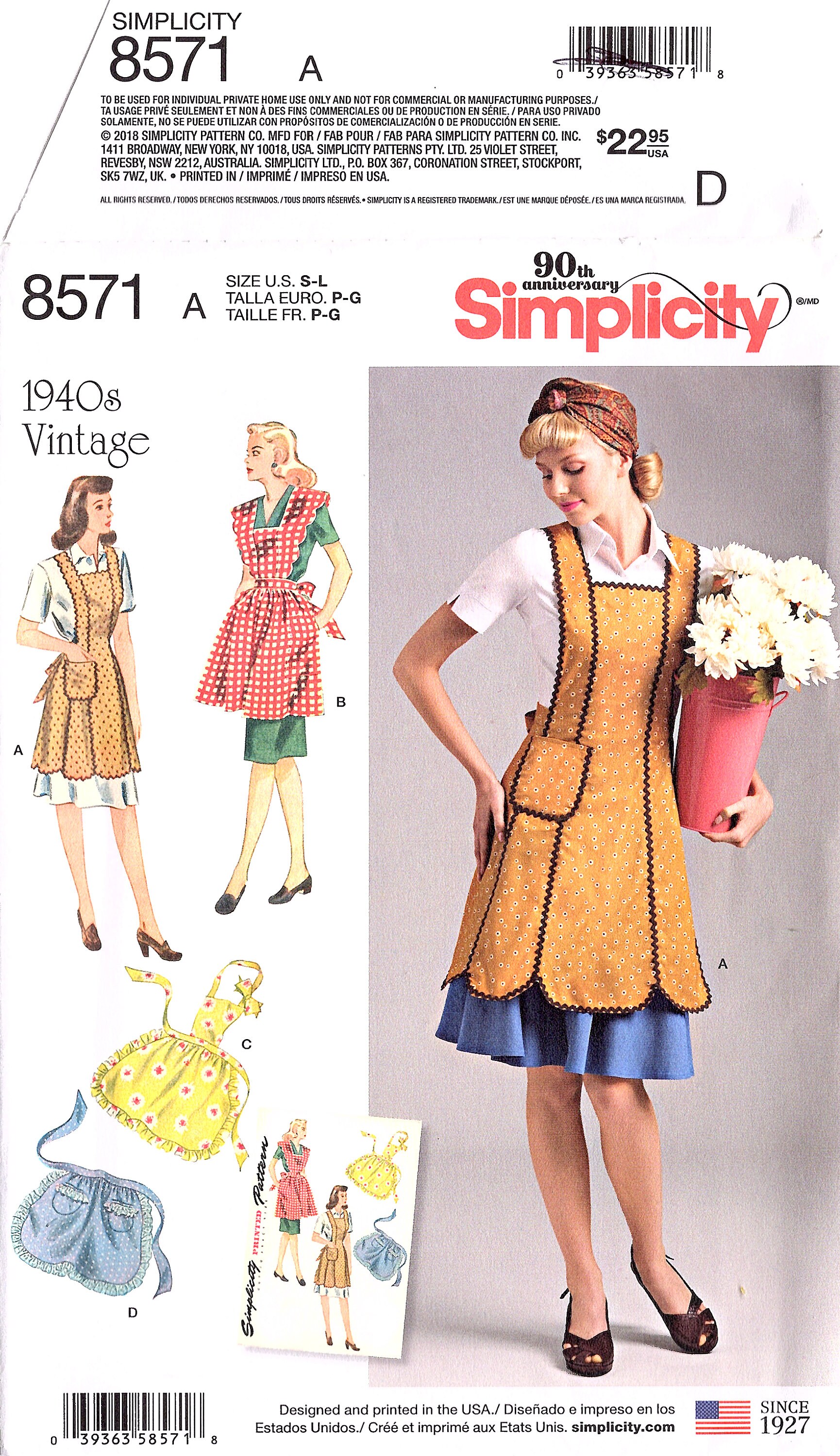 Simplicity Pattern 8571 1940s Vintage Style Misses Aprons Etsy